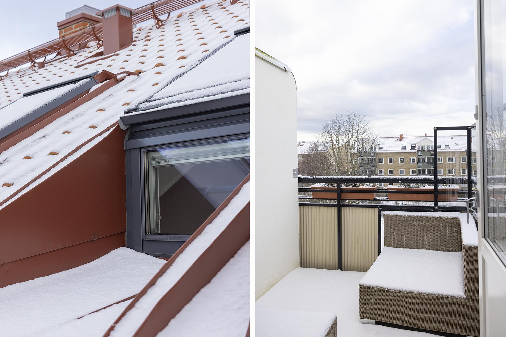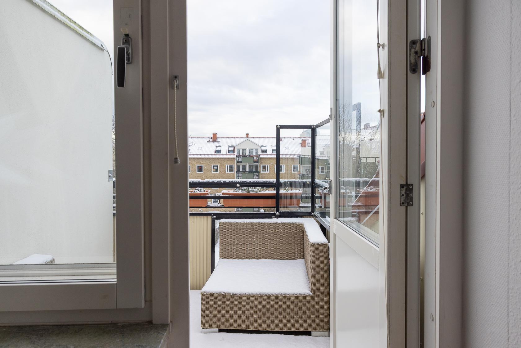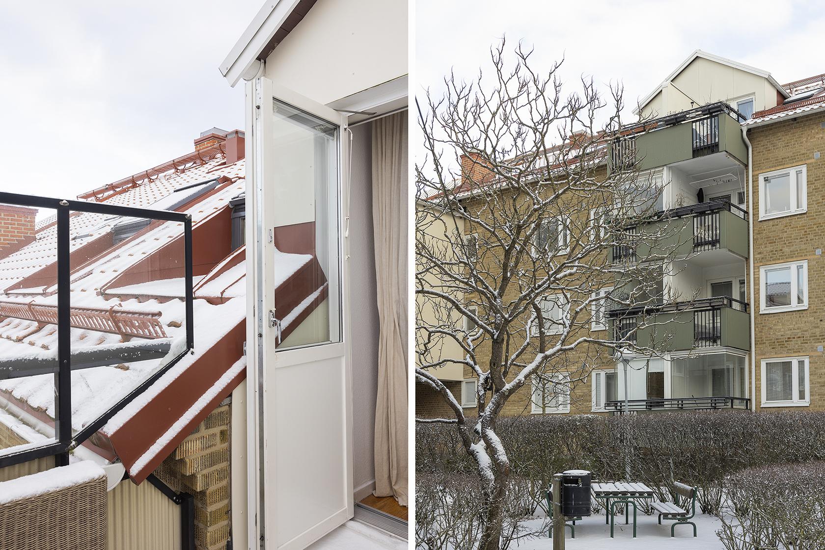 Ljus, insynsskyddad, genomgående vindslägenhet med fina 50-talsattribut och balkong i västerläge!